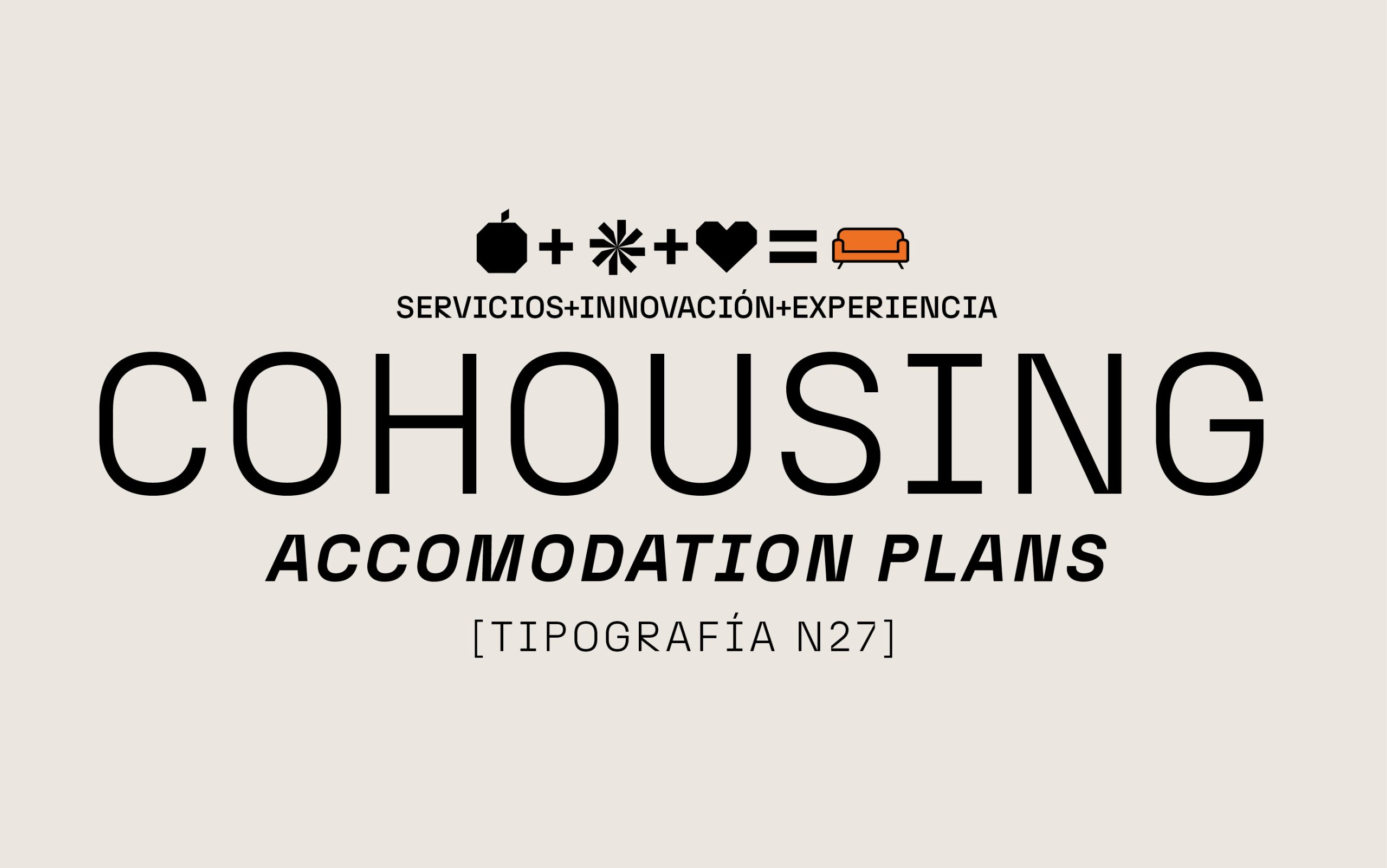 En el plan de comunicación y marketing se detectó la necesidad de renovar la identidad de Cohousing: logo, colores, tipografía, mensajes clave… Cambiamos todo el look&feel de la marca, para que transmitiera la experiencia de marca que ofrece esta agencia inmobiliaria a sus clientes, los estudiantes. Se escogió la tipografía N27 por su rotundidad, se trata de una fuente neo-grotesca con mucha personalidad, gracias a su estructura condensada y rectangular. Así conseguimos cautivar la atención de los jóvenes y crear un estilo propio para la marca. Para el isotipo, desarrollamos el icono de un sofá: el mismo que encuentran los clientes cuando se acercan al local de la agencia. Es un elemento común en todos los pisos que ofrece la inmobiliaria, un lugar de descanso y punto de encuentro de las experiencias que viven los estudiantes en este servicio de alojamiento.